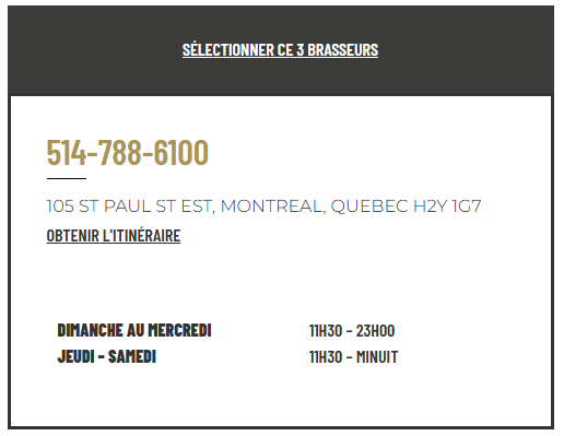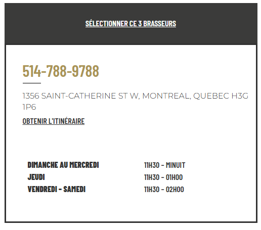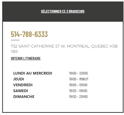 Les événements culturels organisés par ces bars, comme des soirées à thème autour de la gastronomie française, des projections de films ou des concerts avec des artistes francophones, ajoutent une dimension supplémentaire à votre soirée. En visitant le restaurant français de Montréal 3 Brasseurs, vous aurez l’occasion d’apprécier les spécialités françaises tout en profitant d’un cadre accueillant. Avec des amis ou lors d’un happy hour à Montréal dans le secteur Sainte Catherine de Montréal, vous profiterez de tarifs plus avantageux à certians moments de la journée. Vous serez également les bienvenus dans notre restaurant familial de Montréal !