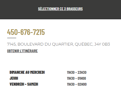 Comment trouver un restaurant abordable dans cette ville de la Belle Province ? Vous pouvez compter sur 3 Brasseurs, un bar-restaurant qui se démarque par sa convivialité et ses plats variés, tout en proposant des tarifs accessibles aussi bien pour les familles que pour les groupes d’amis.