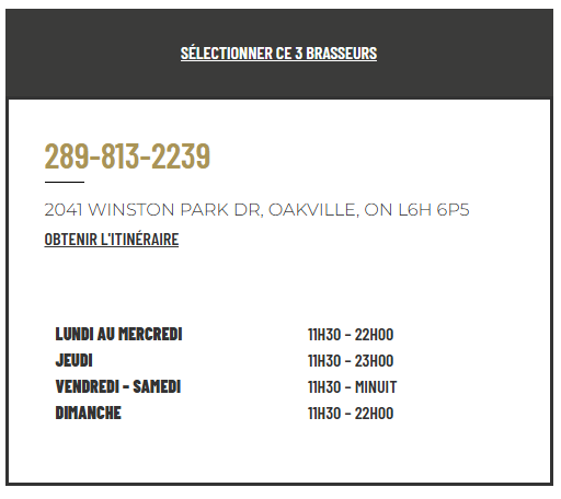 Si vous cherchez un restaurant abordable à Oakville, 3 Brasseurs est l’endroit à ne pas manquer. Connue pour son atmosphère accueillante, cette brasserie offre une large gamme de plats et une sélection de bières artisanales maison. Que vous soyez amateur de pub typique ou que vous appréciiez une cuisine plus raffinée, 3 Brasseurs sait se renouveler pour plaire à tous si vous cherchez un restaurant pour déjeuner à Oakville.